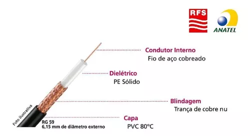 CABO COAXIAL RG 59 75 OHMS PRETO